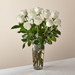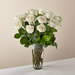 White roses are elegant, luminous, and beautifully accent any room. With a gorgeous selection of crisp white roses among fresh greenery, this bouquet is perfect for birthdays, anniversaries, or as a way to say, "I'm thinking of you. Please Note: The bouquet pictured reflects our original design for this product. While we always try to follow the color palette, we may replace stems to deliver the freshest bouquet possible, and we may sometimes need to use a different vase.
