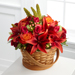 The FTD® Abundant Harvest™ Basket is bejeweled in Autumn's most majestic hues creating an arrangement of blooming beauty. Dark orange Asiatic Lilies, bi-colored orange roses, burgundy miniature carnations, fuchsia spray roses, peach hypericum berries and millet grass are bountifully displayed in a natural wood basket to celebrate the inspiring beauty of this coming harvest season.