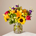 Make this day their best day. We handcraft this colorful array of flowers in a clear glass vase to create a celebration in bloom. Perfect to give for a special reason or to simply share a smile.