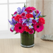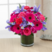 B21-4969The FTD® Pure Perfection™ Bouquet exudes a bright beauty and bold sophistication to send your sweetest wishes to friends and family near and far. Hot pink roses, carnations, mini carnations and gerbera daisies are accented with brilliant blue iris and lush greens to create a fascinating flower arrangement. Presented in a clear glass cylinder vase lined with a ti leaf green material to give it an elegant and finished look, this gorgeous bouquet is set to make that perfect impression in honor of a birthday, anniversary, or as a way to express your congratulations or thank you sentiments.