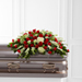 The FTD® Sincerity™ Casket Spray is a wondrous presentation of fresh color and beauty. Rich red roses and carnations are eye-catching and elegant in an arrangement of white hydrangea, larkspur, snapdragons, Queen Anne's Lace and assorted lush greens to create a lovely display meant to bedeck the top of their casket, bringing comfort and peace to those grieving the loss of the departed.