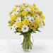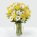 The FTD® Sunny Sentiments™ Bouquet has a warm, welcoming look that will win over your special recipient with each sunlit bloom. Yellow roses and Peruvian Lilies are set to brighten their day, arranged amongst bright white traditional daisies, green button poms, and lush greens to create a stunning presentation. Arriving arranged to perfection in a clear glass vase, this fresh flower bouquet is ready to help you send your sweetest thank you, thinking of you, or get well wishes. GOOD bouquet is approx. 15"H x 12"W. BETTER bouquet is approx. 16"H x 13"W. BEST bouquet is approx. 17"H x 15"W..
