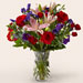 "Share a smile with your loved ones through a bouquet filled with stunning beauty and heartfelt joy. Comprised of vivid red roses, purple double lisianthus, pink lilies and red spray roses within a clear glass vase, vibrant color bursts from every bloom. Make their day brighter with a gift that is Truly Stunning™! - Good bouquet is approximately 14""H x 13""W - Better bouquet is approximately 15""H x 15""W - Best bouquet is approximately 16""H x 16""W "